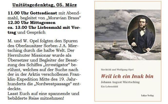 Kulturhistorischer Verein „Alter Fritz“ Hochkirch/Bukecy e.V.: Buchvorstellung „Weil ich ein Inuk bin. Johann August Miertsching – Ein Lebensbild“ mit den Autoren Mechtild und Wolfgang Opel