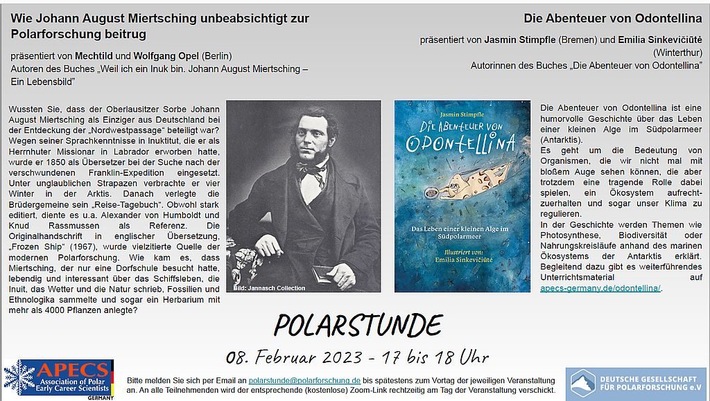 8. Februar 2023 – Online-Vortrag zur „Polarstunde“ der DGP via Zoom. Anmeldung: bis spätestens 7. Februar 2023 an polarstunde@polarforschung.de